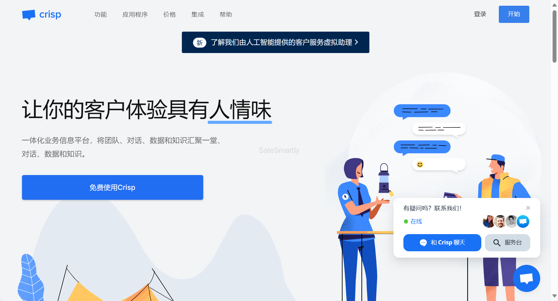 Crisp是一款专门面向初创企业的在线客服系统工具,提供出色的实时客服支持和聊天机器人功能。