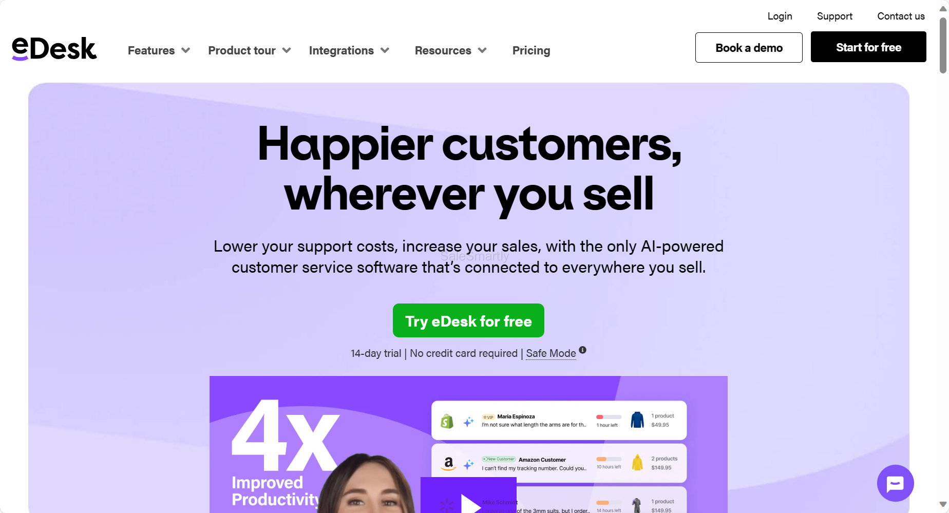 eDesk是一款专门为电子商务卖家打造的在线客服系统,可与目前各种流行的平台无缝集成。该系统提供网站用户活动的视频记录,帮助促进网站销售转化率。
